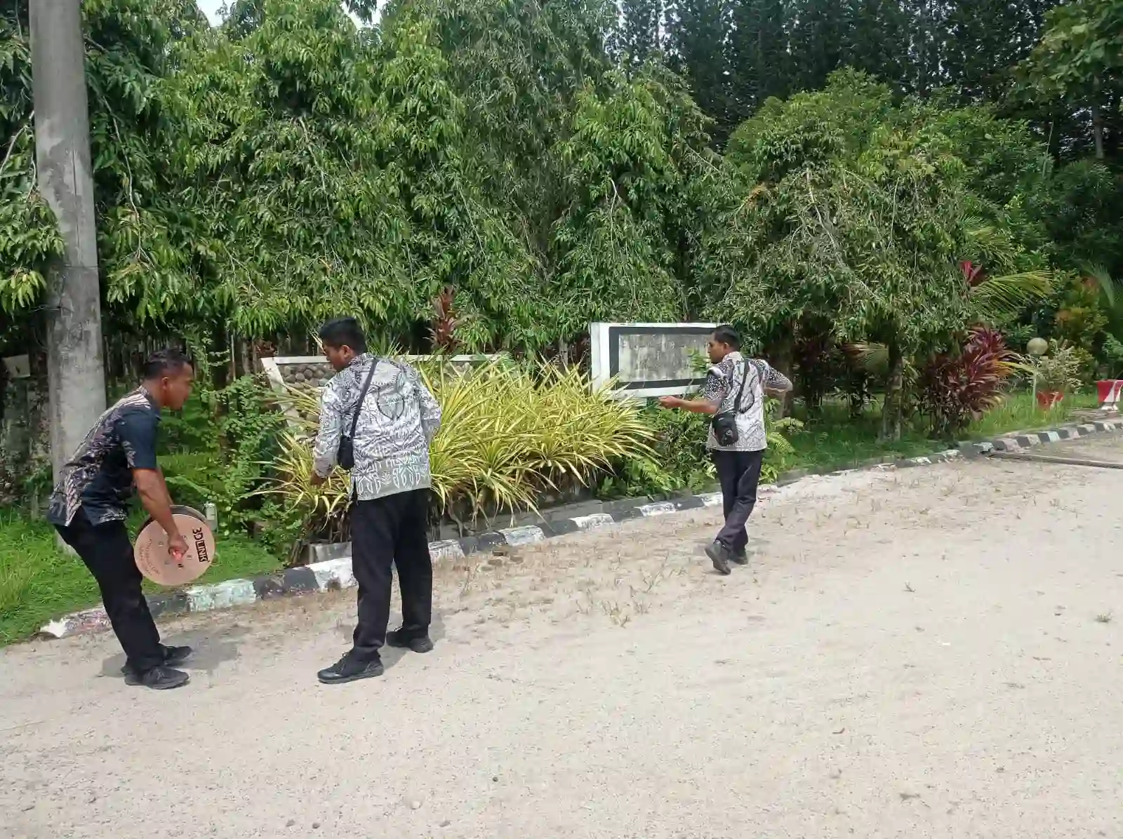 Staf Bidang Teknologi Informatika Dinas Komunikasi dan Informatika Kabupaten Asahan memfasilitasi Penyambungan kabel Fiber Optik yang terputus di Kantor Dinas Pekerjaan Umum dan Penataan Ruangan.
